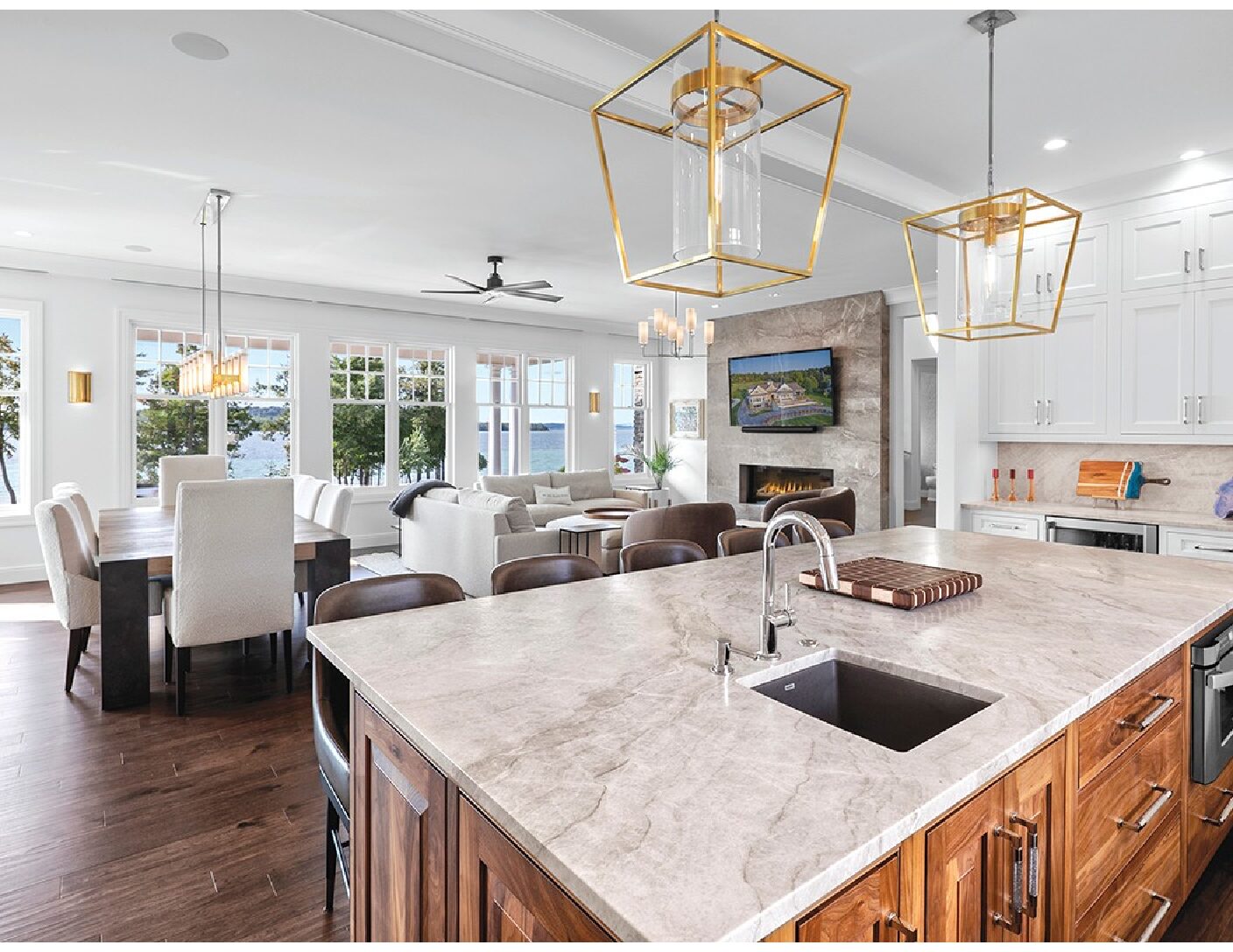 For a highly customized waterfront home in Traverse City with a Coastal New England feel, Millward Custom Homes connected all the intricate details the owners had carefully planned for more than two years. On the exterior, low-maintenance materials combine style and function with composite shakes, metal roof accents, engineered cedar and bluestone. Inside, the expansive structure features three stories that include a finished lower level with an impressive wine cellar.